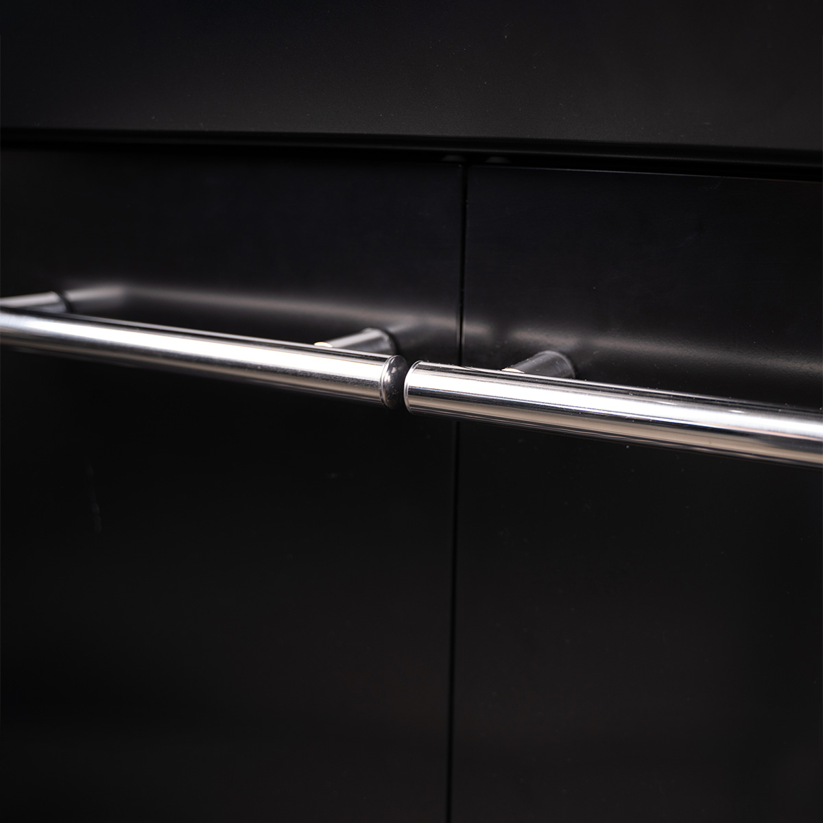 A fedél alatt nagy méretű grillkiegészítők is kényelmesen elférnek: rotisserie forgónyárssal, nagy Dutch Oven vagy csirketartó mind kényelmesen használható zárt állapotban is. A dupla falnak köszönhetően a hőveszteség minimális, a hőmérséklet állandó marad még hűvös időben is – ez nemcsak energiát spórol, de tökéletes grillezési eredményeket is biztosít. Emellett a fedél külső felülete kevésbé melegszik fel, és jobban ellenáll az elszíneződésnek.